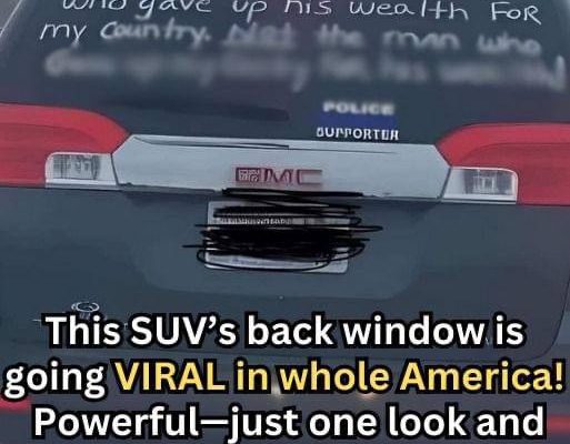 This SUV’s Back Window Message Sparks Powerful Reactions! ” Spotted on the road—a black SUV bearing a bold, handwritten message that’s bound to make anyone look twice. The driver’s words cut deep, sparking thoughts on loyalty, values, and sacrifice. With carefully chosen phrases, they’ve transformed their back window into a platform for a statement that resonates on multiple levels.