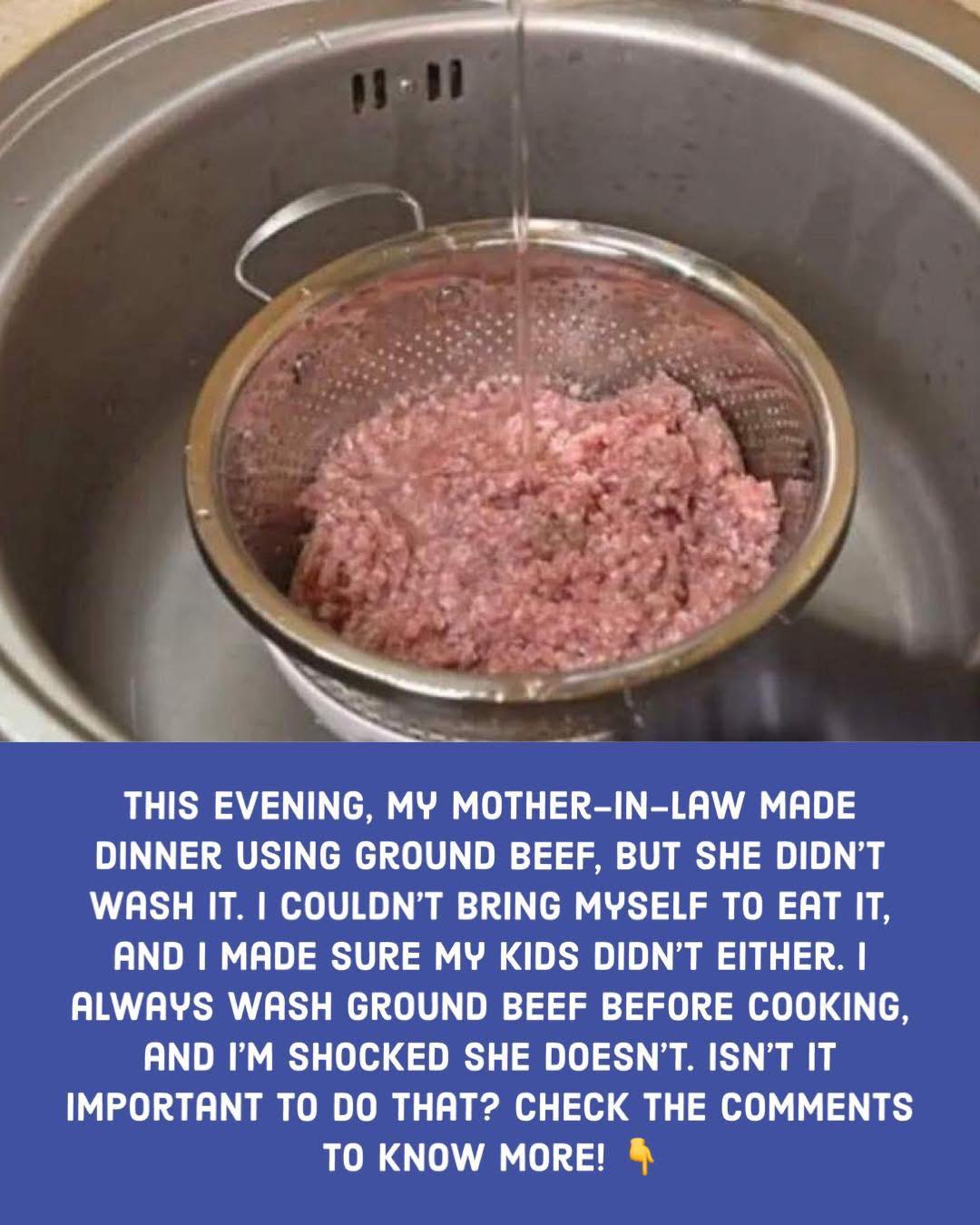 This evening, my mother-in-law made dinner using ground beef, but she didn’t wash it. I couldn’t bring myself to eat it, and I made sure my kids didn’t either. I always wash ground beef before cooking, and I’m shocked she doesn’t. Isn’t it important to do that? Check the article to know more! 👇👇