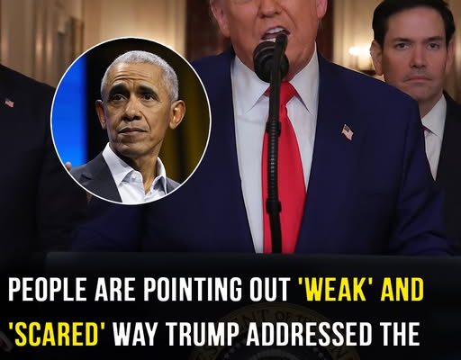 One X user compared Trumpâs address to those given by the likes of former presidents Joe Biden, Barrack Obama, and George W. Bush, writing: âI have never seen a US President that was so weak and so scared about taking military action that he needed his yes-man entourage to keep him company at the podium in the Cross Hall.â