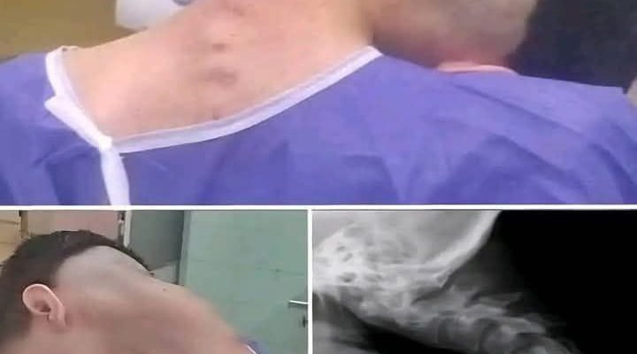 The pictures – published by doctors at the Al-Zahra University Hospital in Isfahan, Iran – show a 23-year-old man with an extreme bend in his neck, which developed after years of substance abuse.