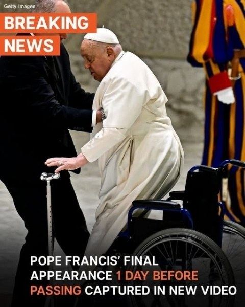 Images show a touching scene where attendants helped steady his microphone, allowing him to deliver a final message of peace and hope. His surprise appearance touched many, especially after a recent near-fatal battle with pneumonia.